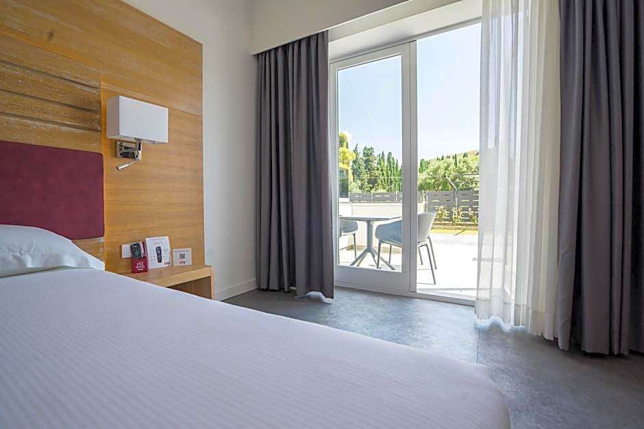 Rooms come with air conditioning, soundproofing, and balconies offering garden views, plus free Wi-Fi and on-site private parking. On-site amenities include a Restaurant and Bar, access to a private beach area (extra charges), and a kitchenette with kitchenware for in-room meals. Family-friendly options include a kid-friendly buffet and kids' meals (extra charges).